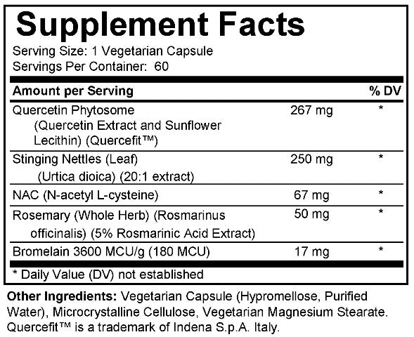 AllerQC is an all natural nutritional supplement that is designed to provide relief from occasional allergy symptoms such as sneezing, runny nose, itchy and watery eyes. AllerQC is also helpful for decreasing minor allergic reaction symptoms and has no side effects such as drowsiness, fatigue, or nervousness. It contains large, but safe, concentrations of a number of high potency enzymes and nutrients in meaningful levels to ensure effectiveness. It has also shown to be helpful for men who suffer from frequent urination or difficulty starting their urination when it is combined with our prostate support formula. ‡